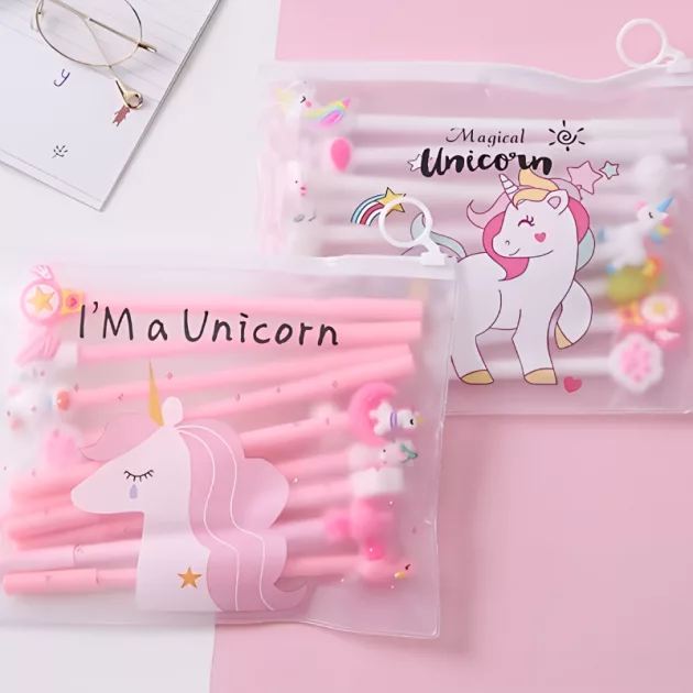 These unicorn pens made my drawing time much better. The soft grip lets me color for ages. The little case is super handy for school.