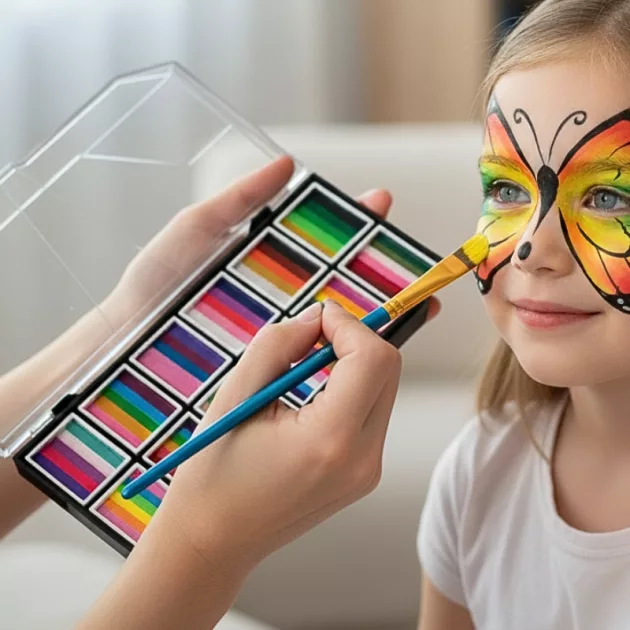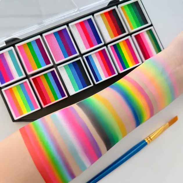 I dressed up as a fairy and used the rainbow colors. They didn’t itch or smell strong. After the party, I just wiped my face clean.