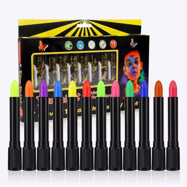 Brilliant Creative Colours - Vibrant shades shine under ultraviolet lighting, transforming faces into artwork. Sets offer many combinations, encouraging imagination during parties, carnivals, and performances.