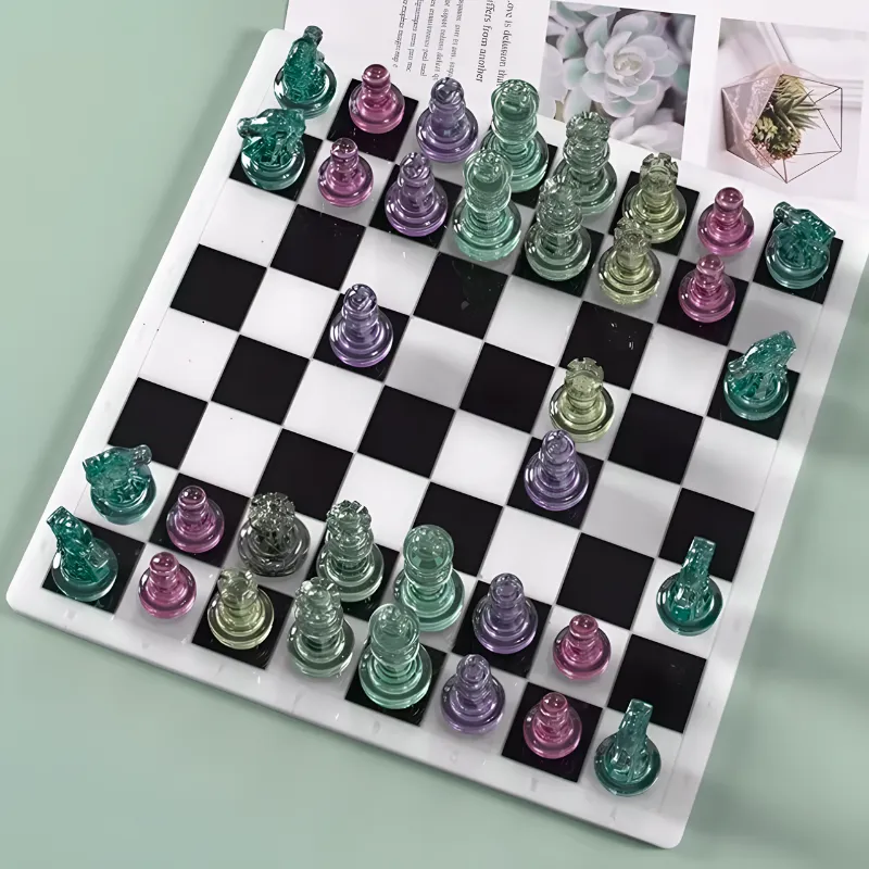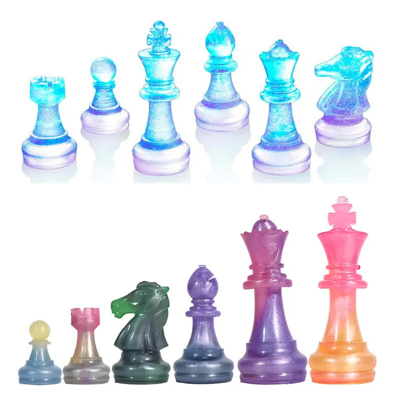 We spent a rainy afternoon turning clear resin into colorful kings and pawns. The chess board looks so creative now and we play all the time.