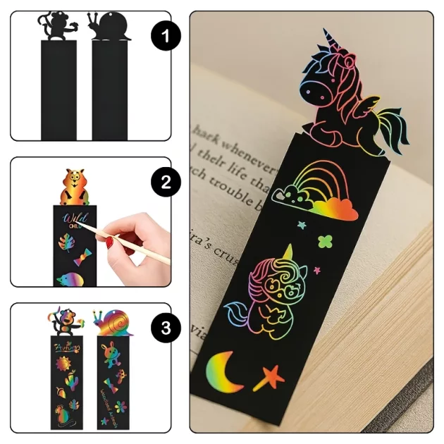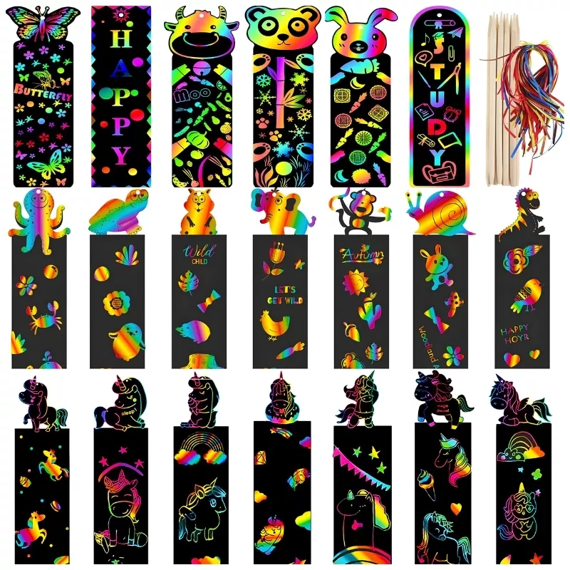Children will enjoy making vibrant artwork while learning about various animals. Kidzly brings a playful adventure with every colourful scratch. Each sheet reveals hidden rainbow magic as you draw.