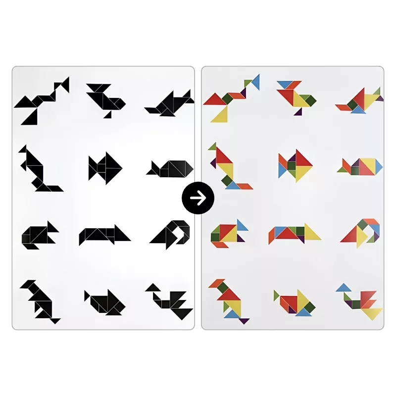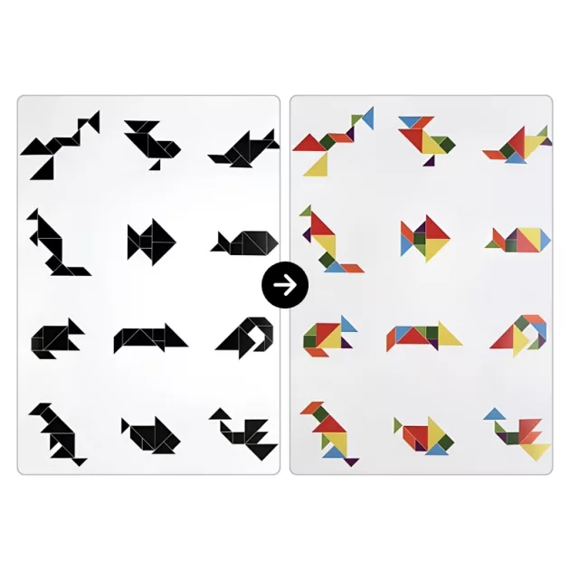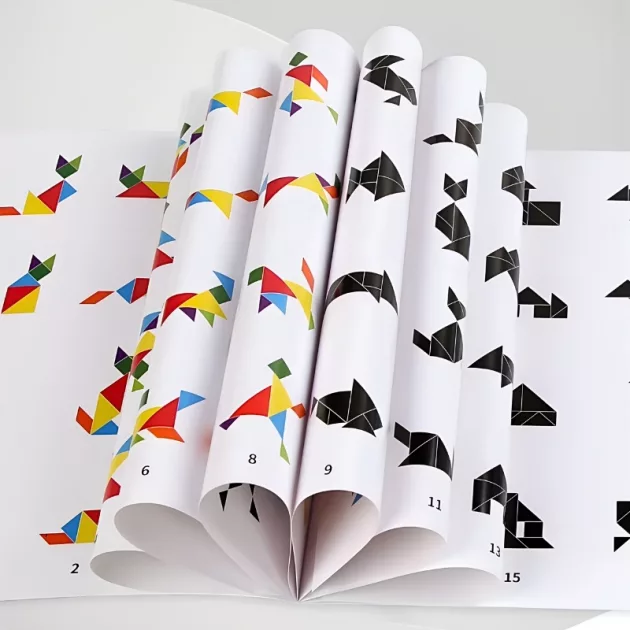 This tangram game keeps my brother and me busy for hours! We love mixing up the shapes to make funny animals and cool puzzles. It’s super fun.