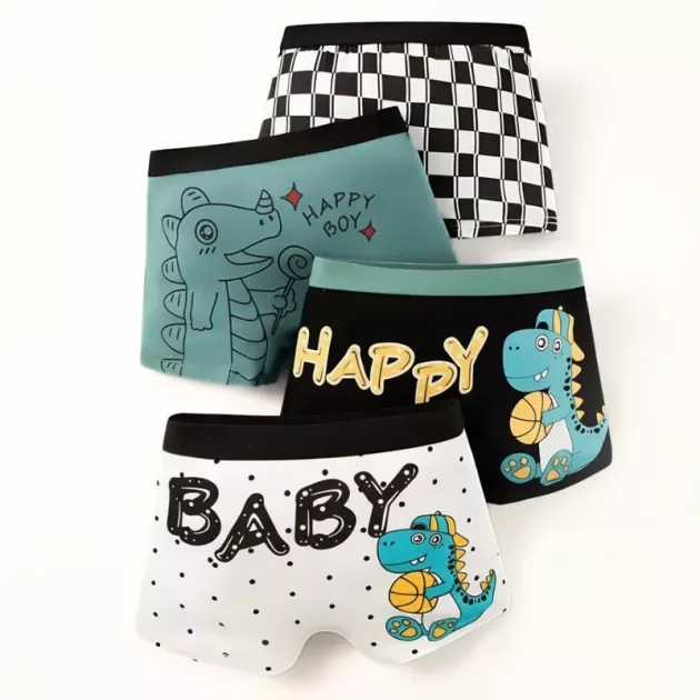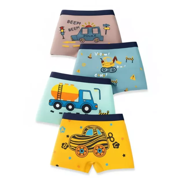 4pcs Cute Breathable Boxer Briefs Pure Cotton Underwear for Kids