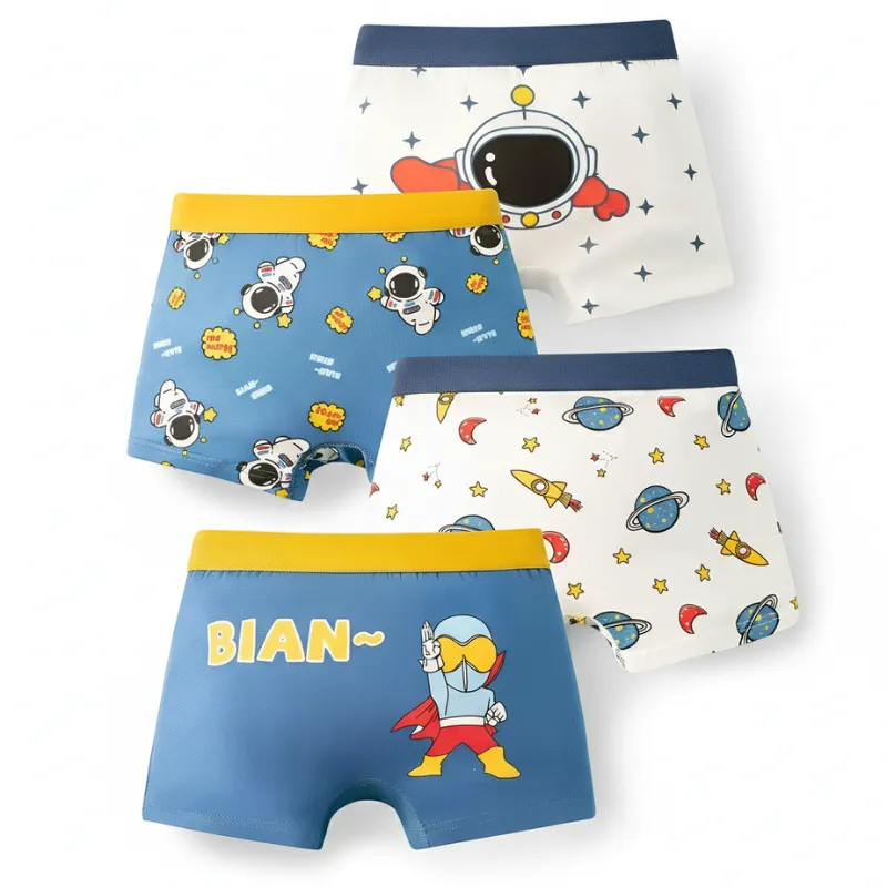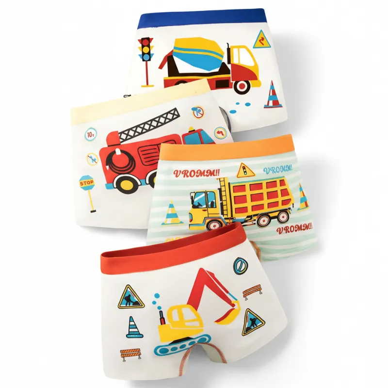 4pcs Cute Breathable Boxer Briefs Pure Cotton Underwear for Kids