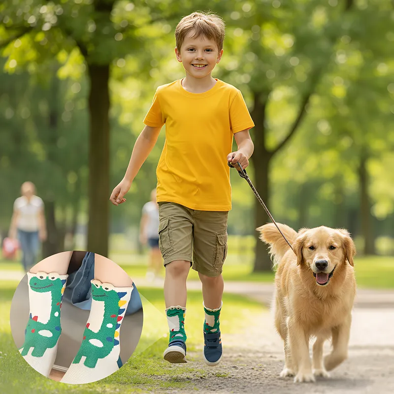 These dino socks are super soft and cozy! My little brother loves them for school days and always shows off the cute patterns to his friends. Highly recommend!