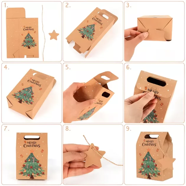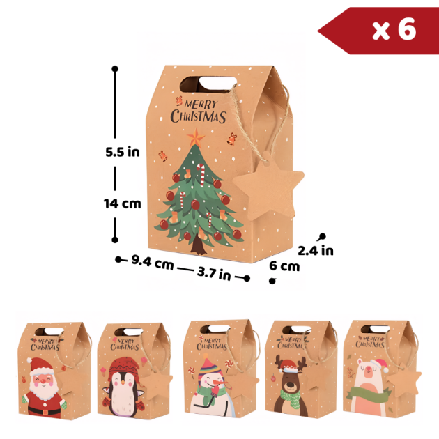 6pcs Brown Paper Christmas Gift Bag Craft Package