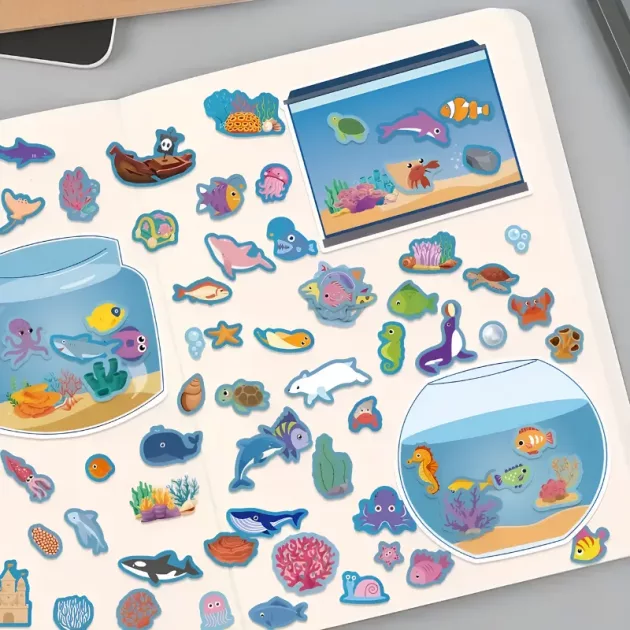 Transform any rainy afternoon into a creative journey. Brightly coloured stickers bring the magic of the ocean to life. Each activity keeps little hands busy and minds inspired. Enjoy bonding and laughter as your child builds their dream aquarium.