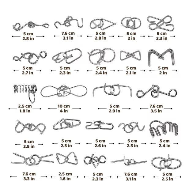 We brought the wire puzzles on vacation. Kept my cousin and me busy during rainy days. Solving each one makes us feel accomplished!