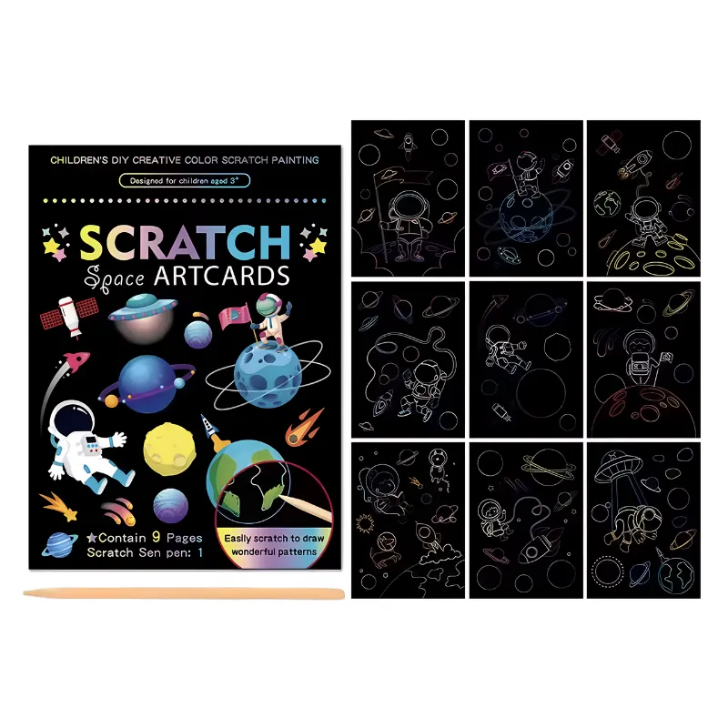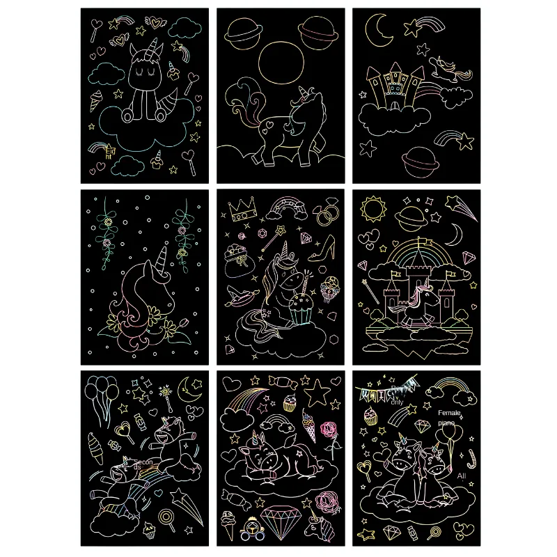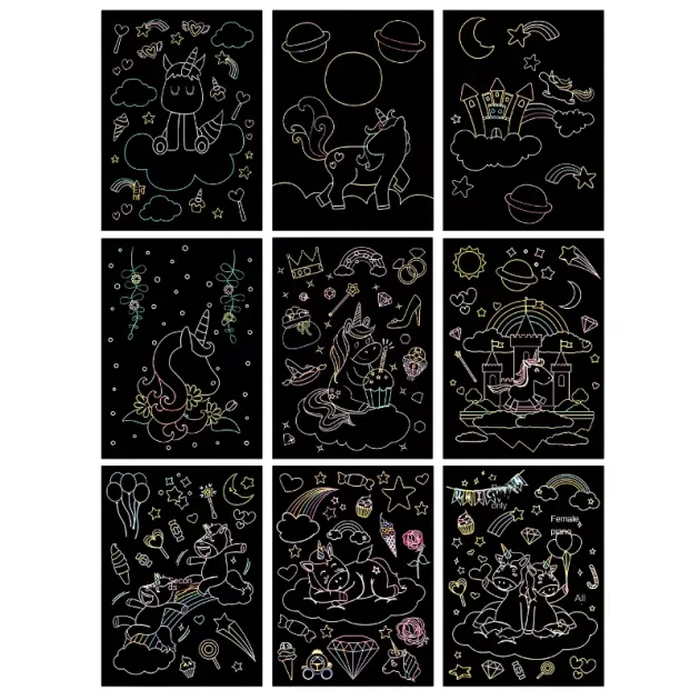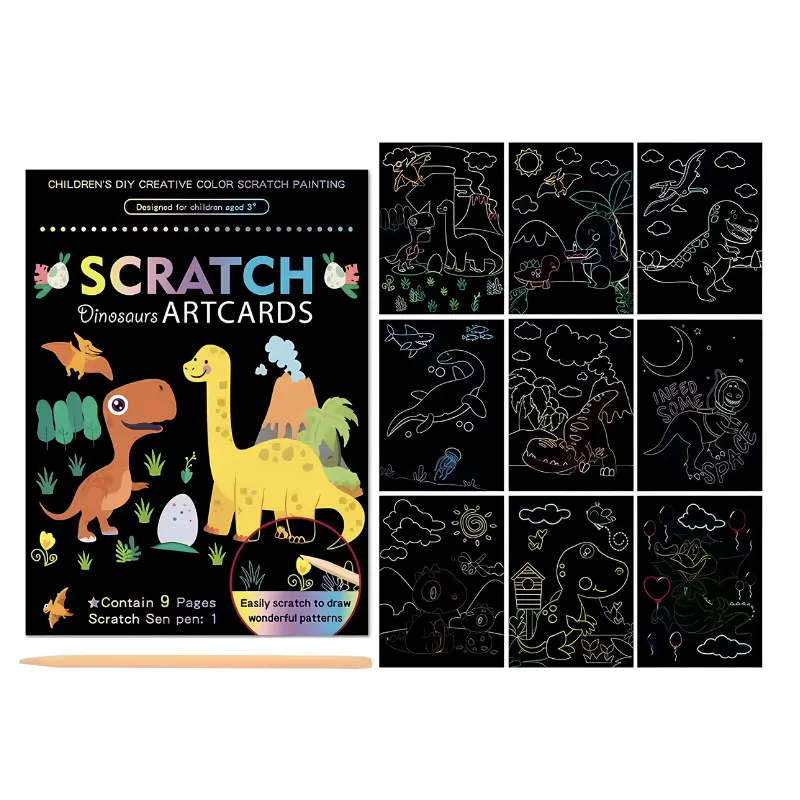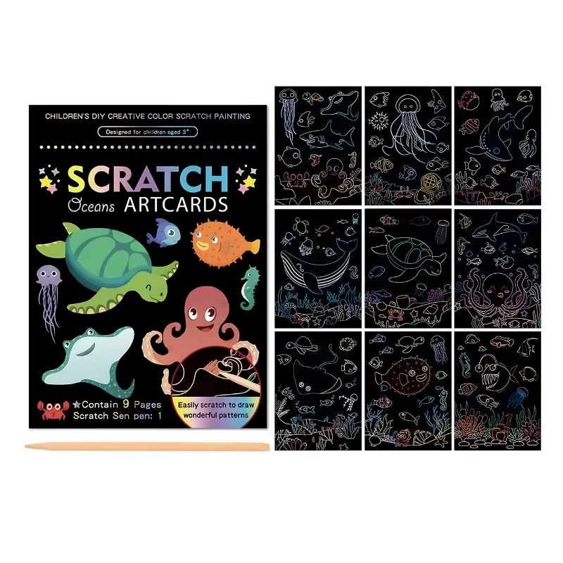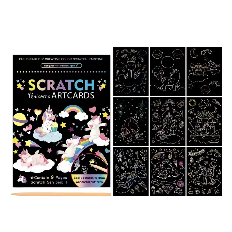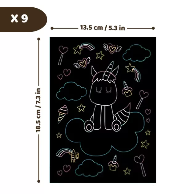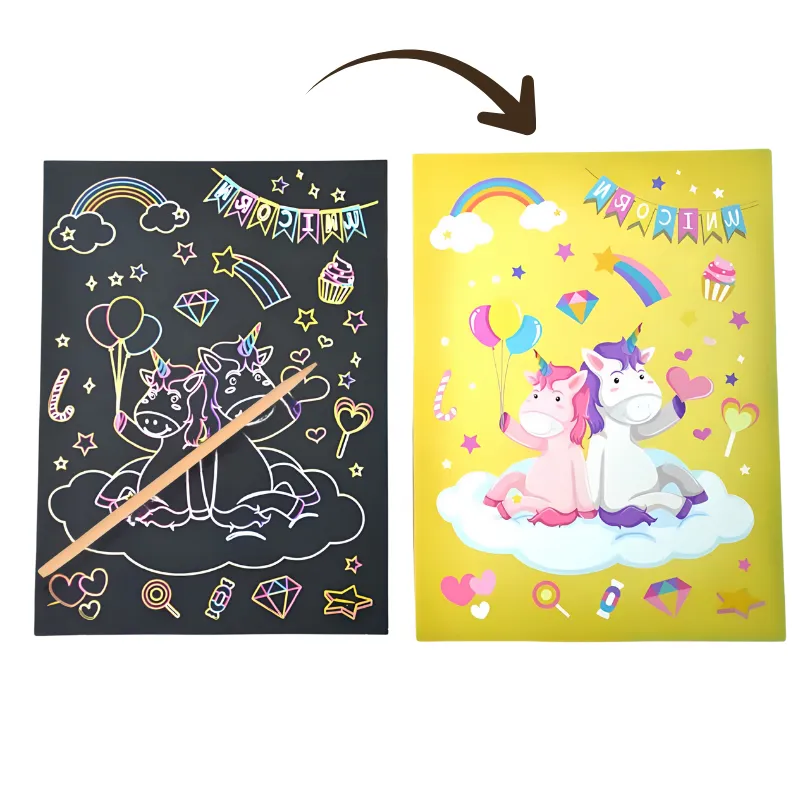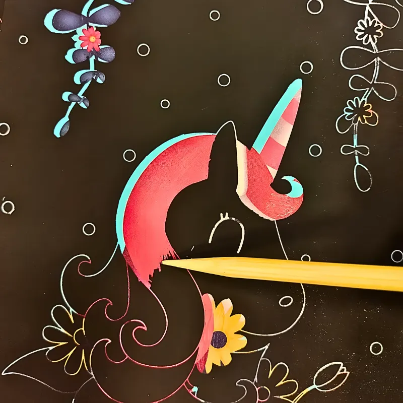 Watch creativity flourish as each sheet reveals bright colours. Magical designs appear with every scratch, keeping children engaged. Beautiful glow effects turn every artwork into a unique masterpiece.