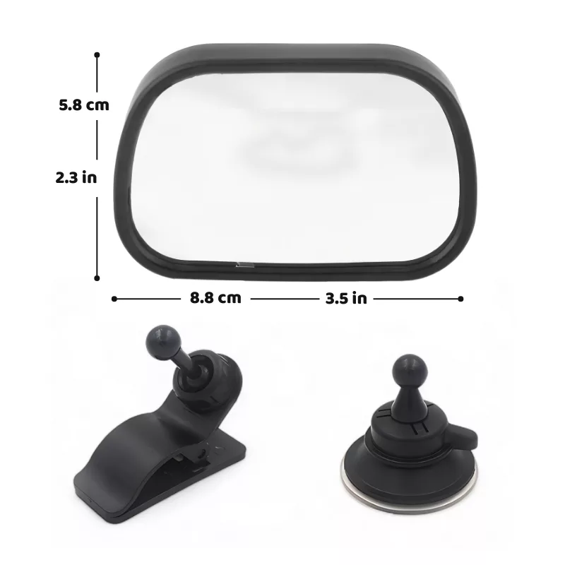 Wide Clear View - Easily spot your child from every angle in the back. The large surface ensures that nothing important goes unseen.