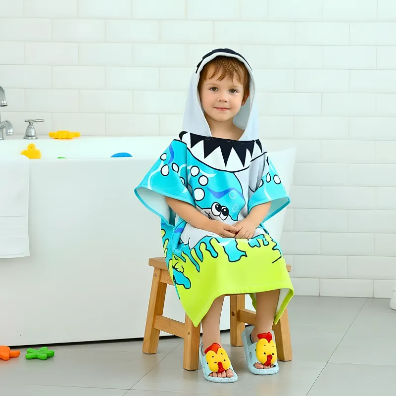 Colourful designs turn every wash into an adventure. Soft fabric keeps children comfortable after swimming or bathing. The practical poncho shape lets them move freely and dry quickly. Hooded style helps protect against chills and keeps damp hair covered.