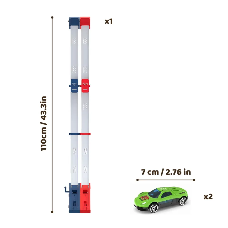 Dual Mode Action - Switch easily between two racing styles for endless fun. Choose between gravity-powered speed or flat launch excitement indoors.