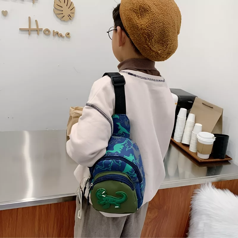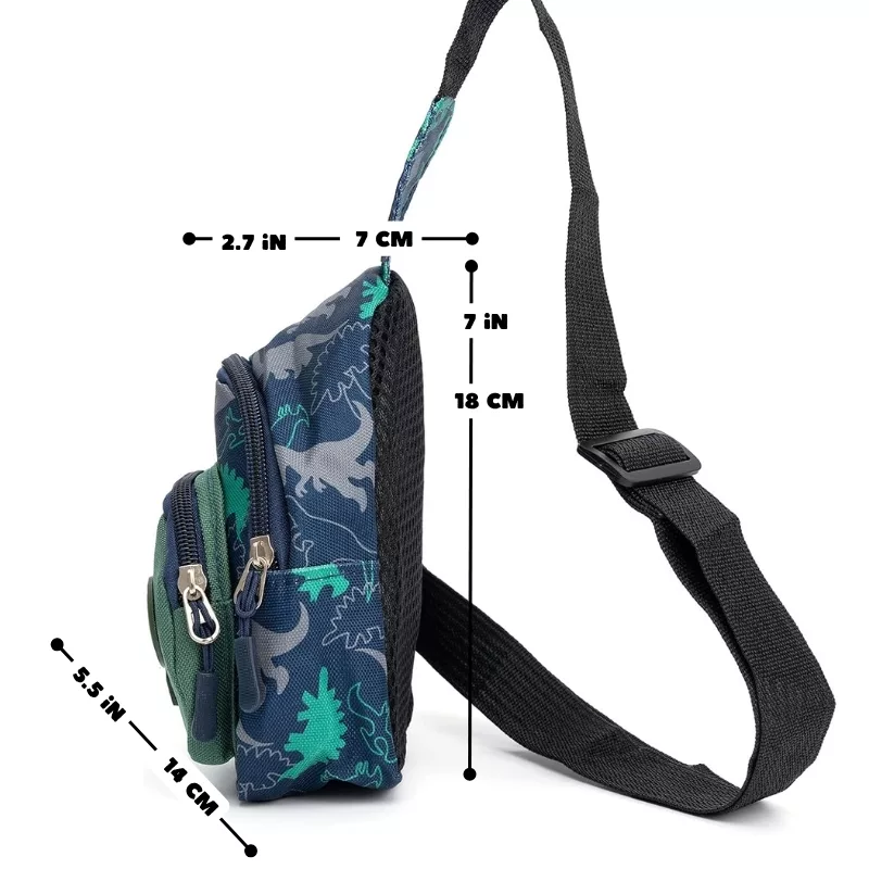 The Kidzly sling bag keeps belongings safe during outdoor playtime. Oxford cloth protects from rain and is resistant to any impact. Double zips keep toys and snacks in place all day.