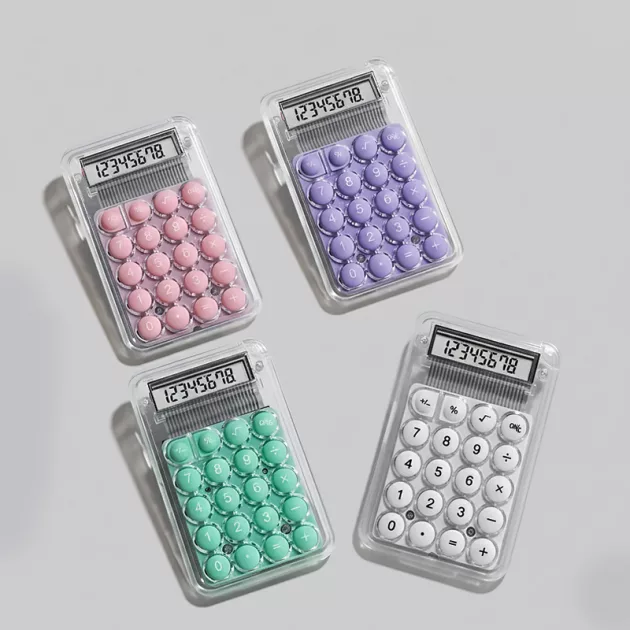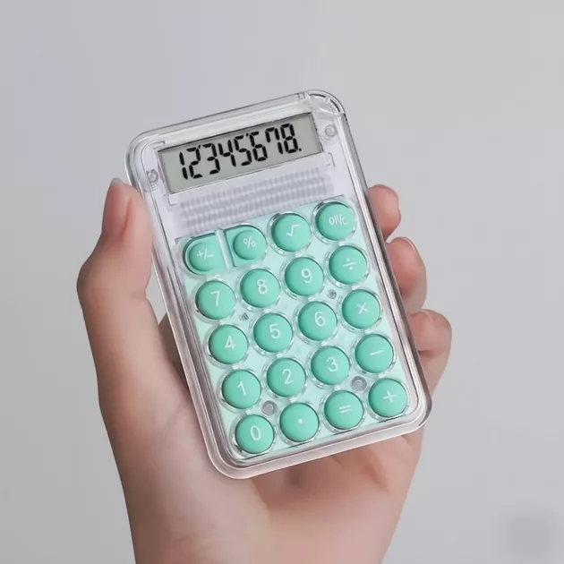 This tiny calculator is a game changer! I never press the wrong button, and it fits snugly in my pocket.