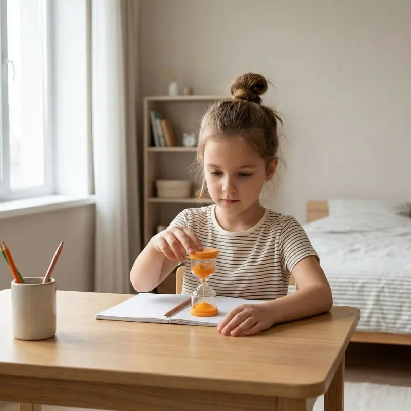 The bright colors caught my son’s eye immediately. Now he flips the timer himself before cleaning his room and actually finishes without reminders.