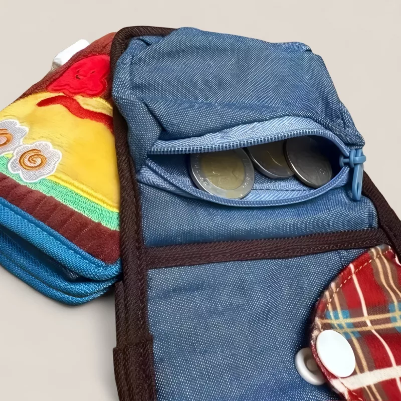 Kids love bright designs and need a safe place to store their money. This fabric wallet helps keep cards and coins organised without hassle. Give your child confidence and responsibility every single day.