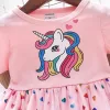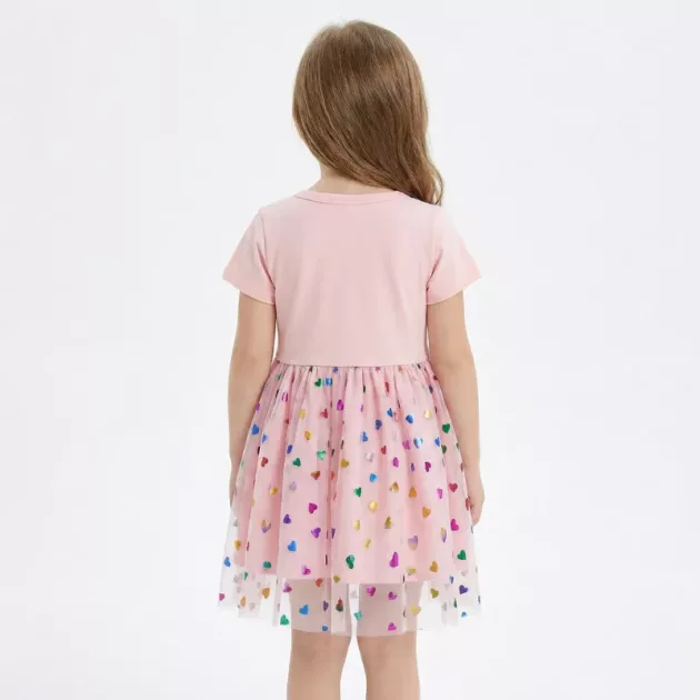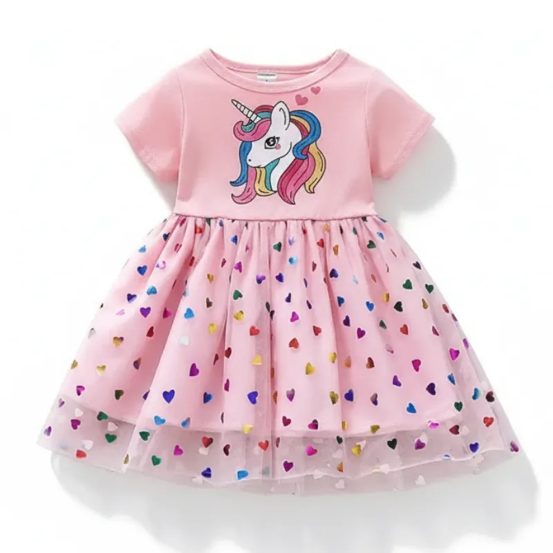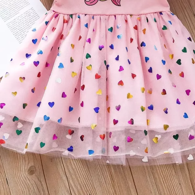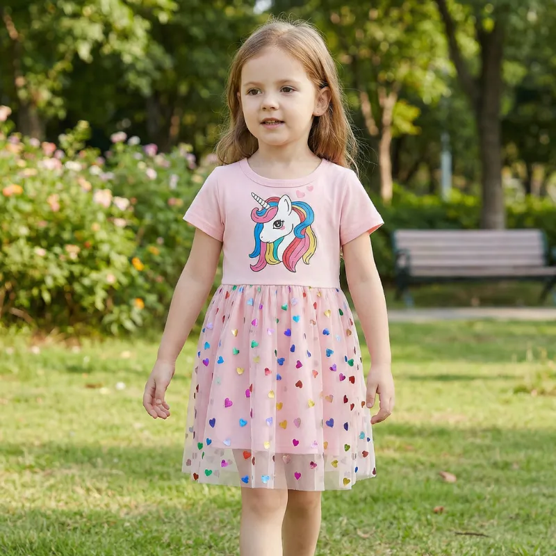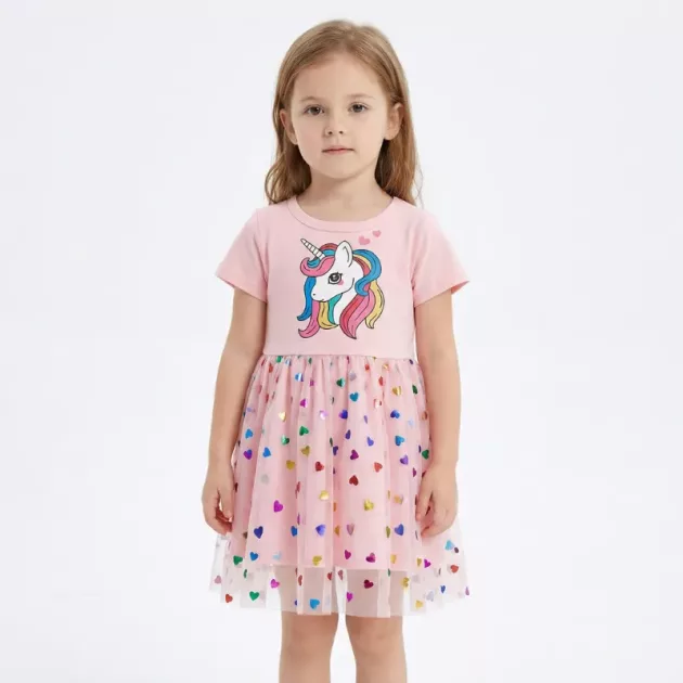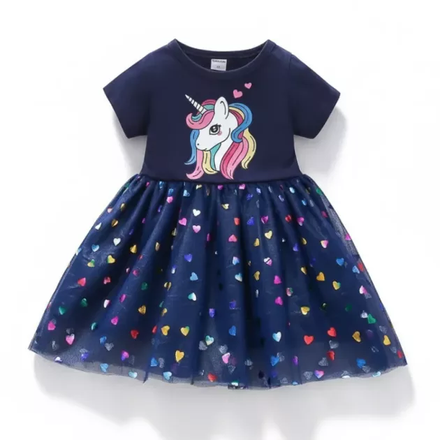 The unicorn dress is adorable and fits my little one perfectly. She’s obsessed with the hearts and the magical print. Washes well every time, no fading.