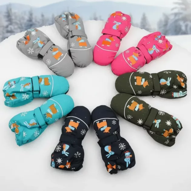 Every parent wants peace of mind during winter fun. These colourful mittens shield from wind, snow and rain outside. Soft materials inside keep small fingers cosy all day.