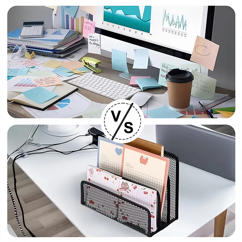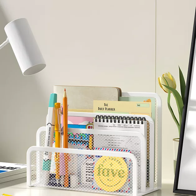 This stand makes it fun to keep things neat. I can put my files, markers, and sticky notes all in their place without any hassle.