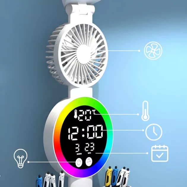 I use the lamp every night for homework. The fan keeps me cool, and the clock helps me keep track of time. Super helpful!