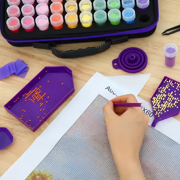 The storage case lets me sort all my diamond dots by color. I like organizing them because it makes starting my projects really fast.