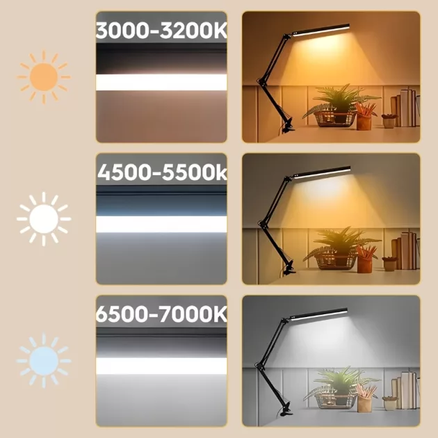 I use this desk light when I do my homework. Changing the colors is fun, and my eyes never feel tired anymore. My desk stays neat because of the clip.