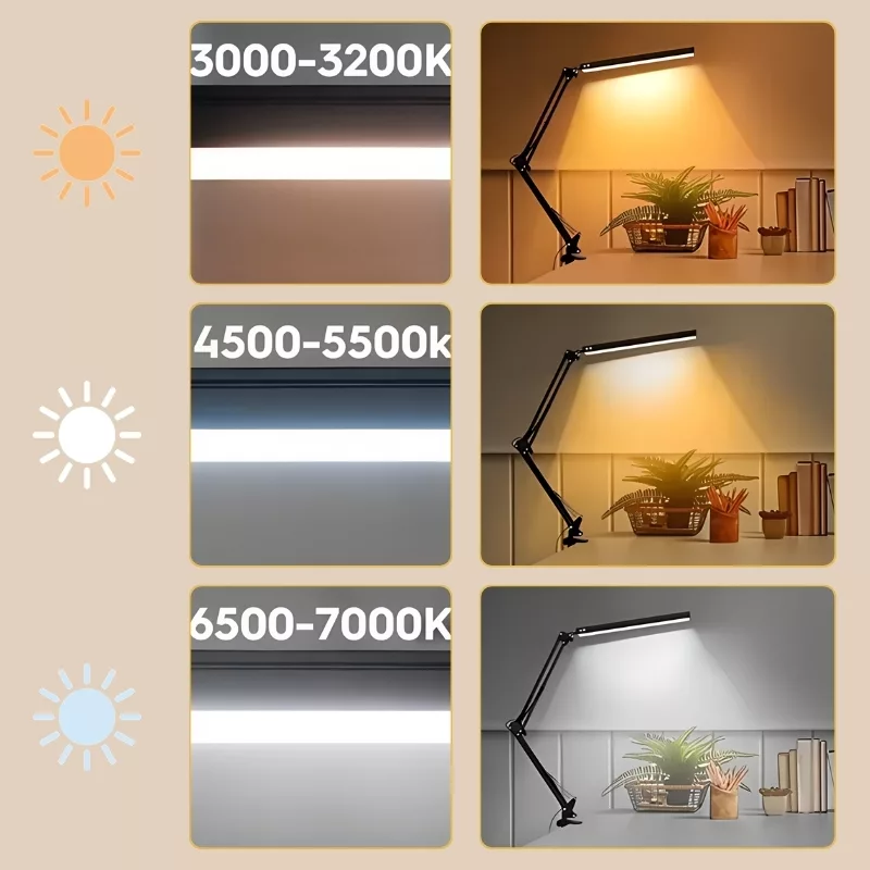 I had a regular desk lamp before and always got headaches. Since using this clip lamp, my eyes feel fine. I like picking warmer or cooler tones before bed.