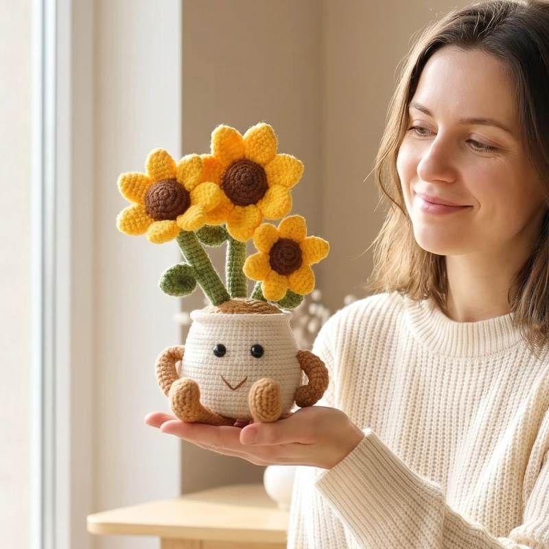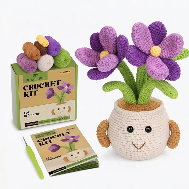 I bought the flower pot set for my 8-year-old. She usually gets frustrated, but the clear pictures and soft yarn kept her calm and really boosted her confidence.