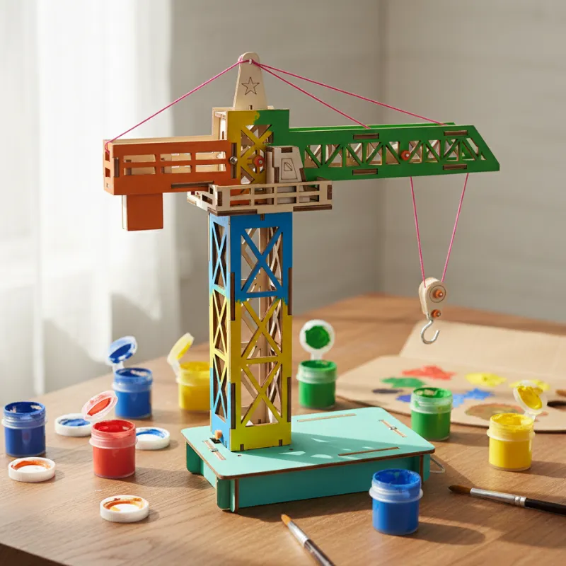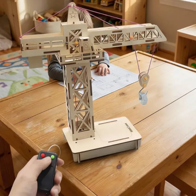 Building helped me focus and work carefully. The crane actually moves things around, which surprised me! Love the natural look of the wood.