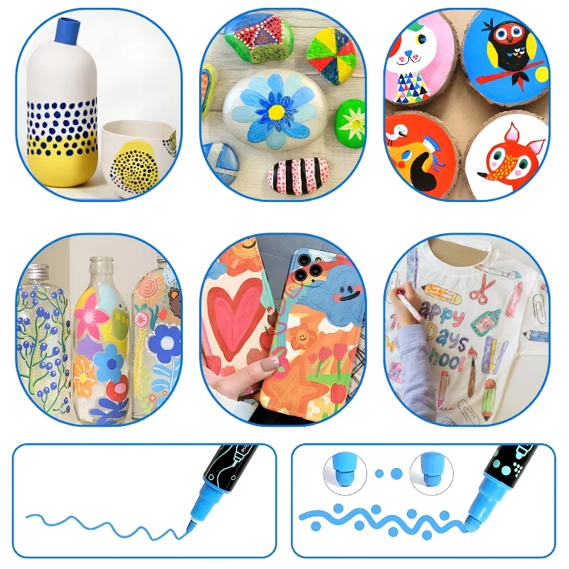 Unleash endless imagination with Kidzly Dual-Tip Acrylic Paint Markers. They make drawing both easy and fun for young artists. They allow your child's skills to flourish without limits.