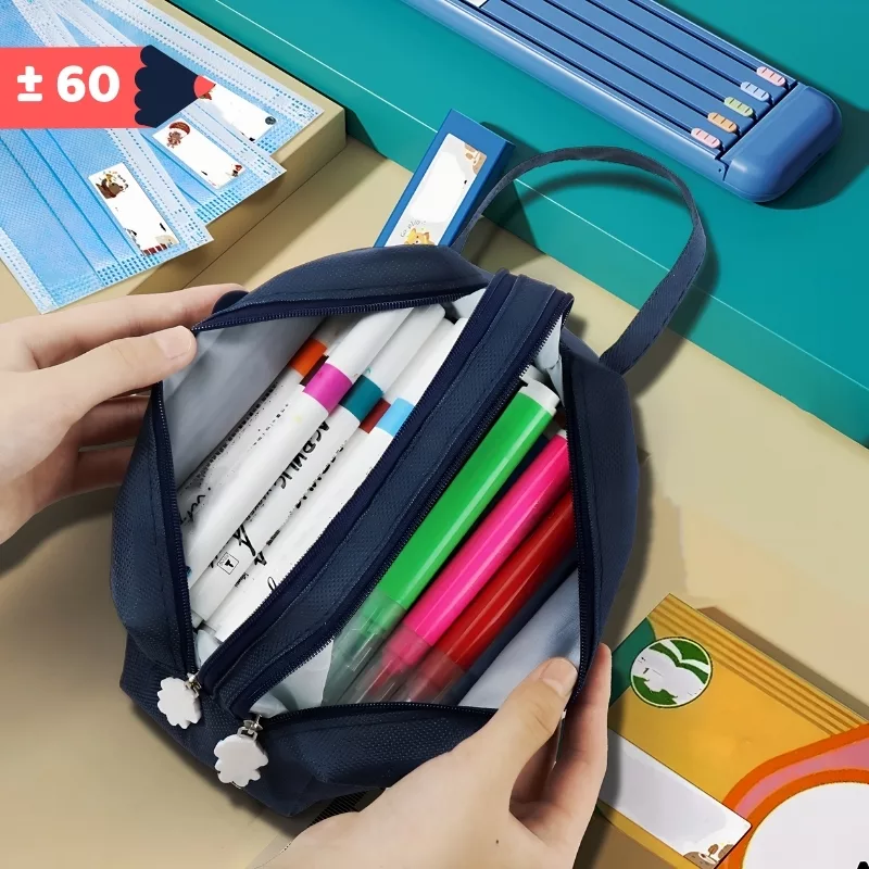 Large Storage Space - Double layers keep essentials separated for quick access. No more searching for pens or erasers before lessons start.