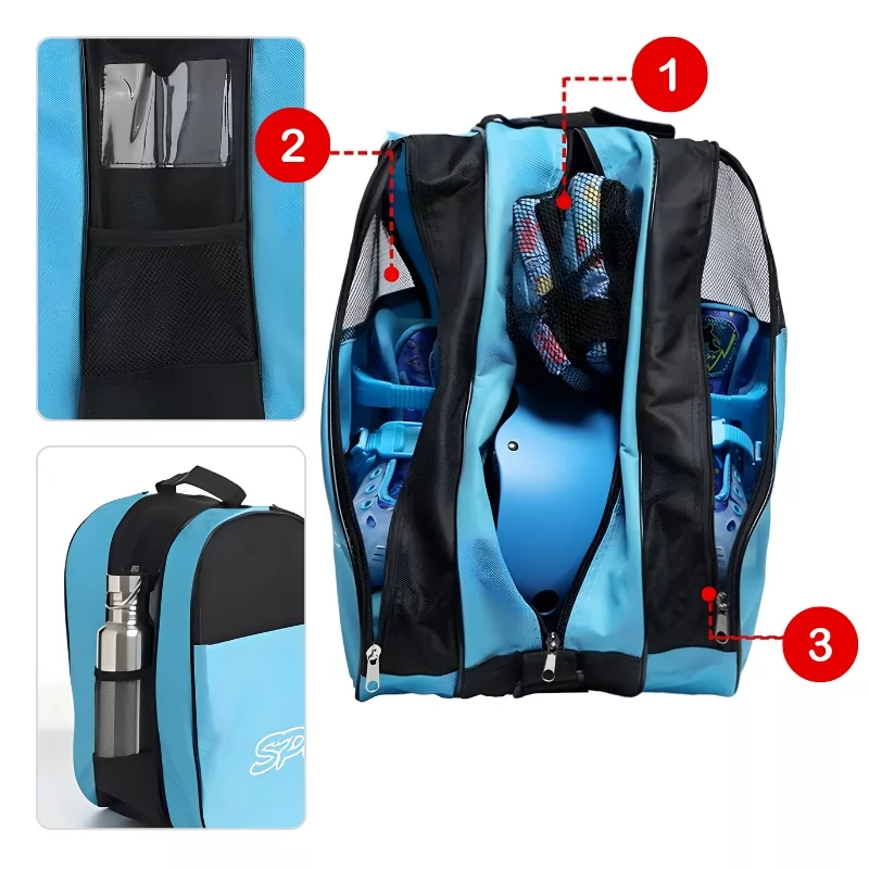 This skate bag really helps my daughter keep her gloves and helmet separate. She loves packing it herself before ice skating practice.
