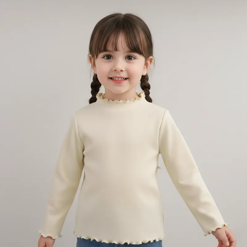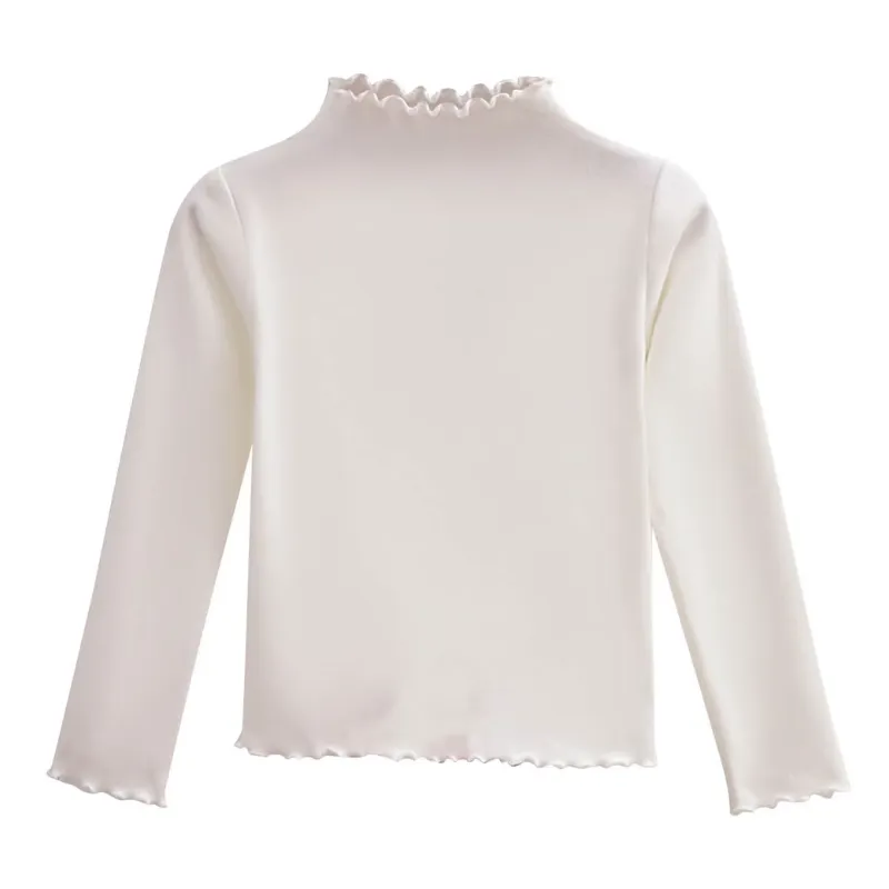 Lovely Warm Long Sleeve Shirt with Lettuce Edge for Kids