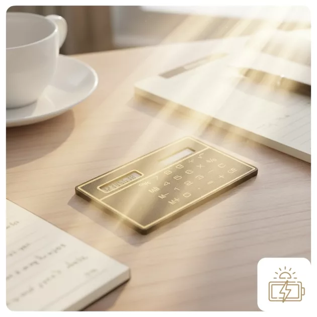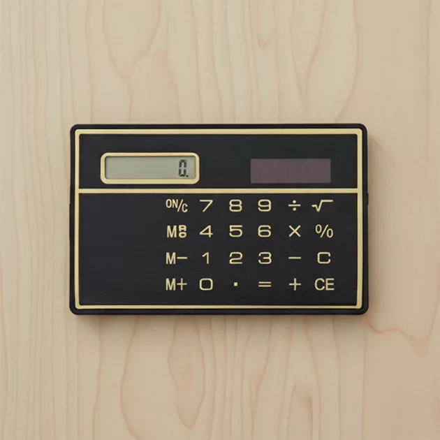 This calculator is really handy. Fits in every bag, doesn’t take up space, and works as soon as any light hits it.
