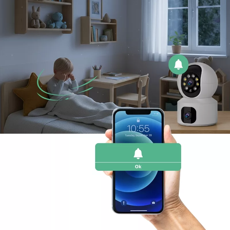 This camera lets me check on my twins even in the dark. Getting alerts to my phone gives me peace of mind every night.
