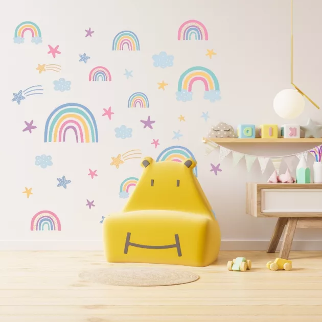 We put these cute rainbows on our playroom walls, and the kids love watching them light up after bedtime. Easy to stick, and colors are so lively.