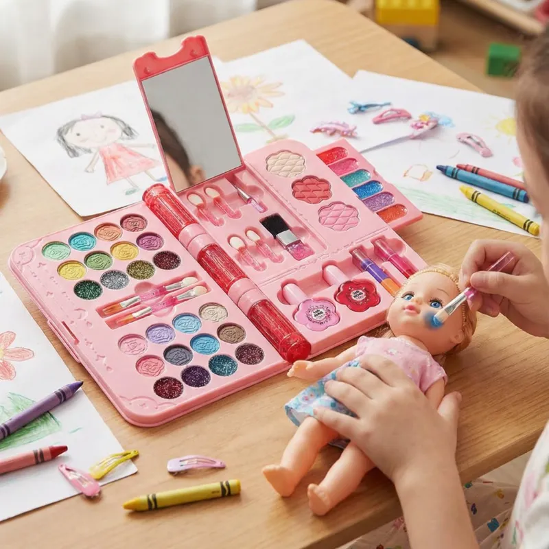 My little sister can’t stop playing with this makeup kit! The colors are pretty, cleanup is so quick, and she feels really fancy doing makeovers.