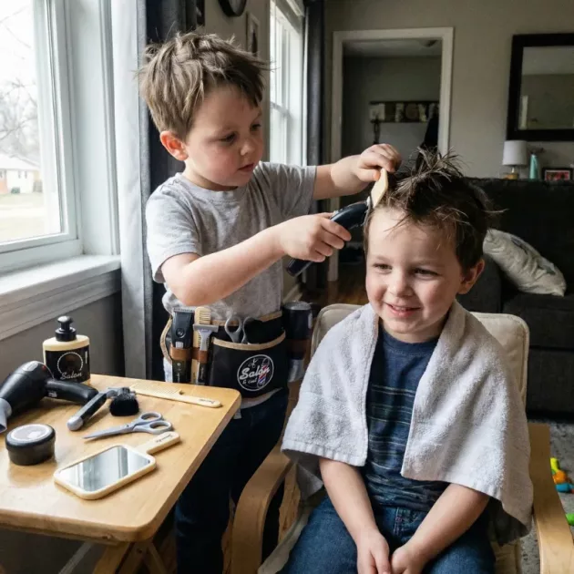 My little sister loves her new hair kit! She gets creative and even pretends to sweep up hair after finishing ‘cuts.’ Just like a real salon.