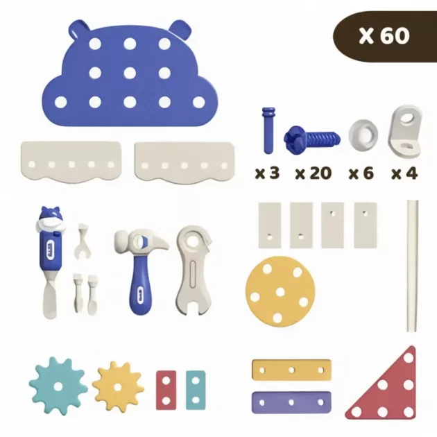 Watch imagination soar as young builders explore endless possibilities. Every tool encourages curiosity, coordination, and joyful learning experiences. Clean-up becomes simple with a clever box that keeps everything tidy. Give your child a fun way to practise real-world problem solving every day.