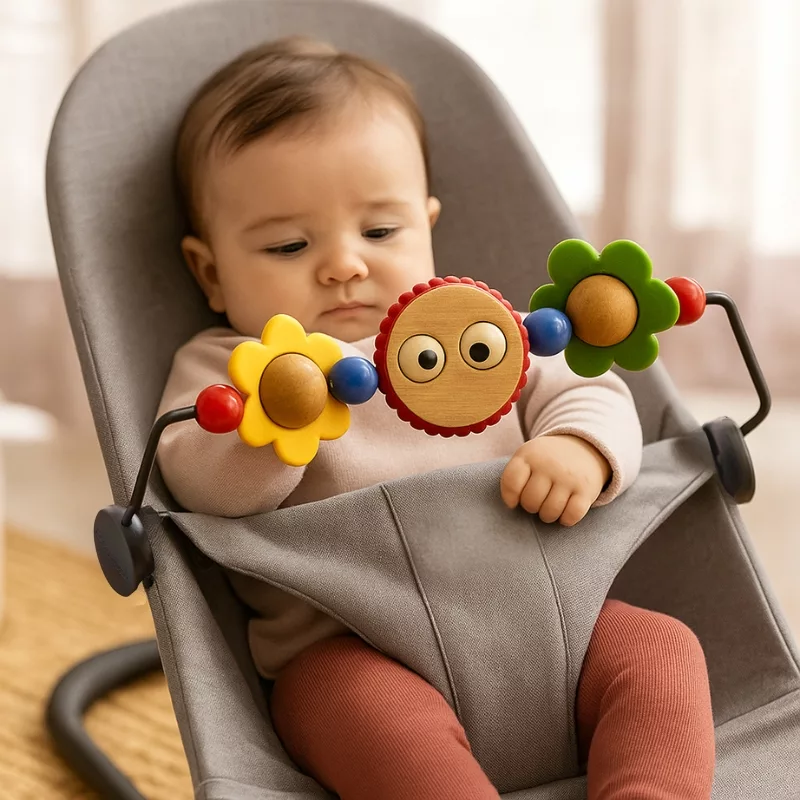 Easy to install - Mounting this rattle on a bouncer or a crib is a breeze. There's no need for any tools, and the setup takes just a few moments.