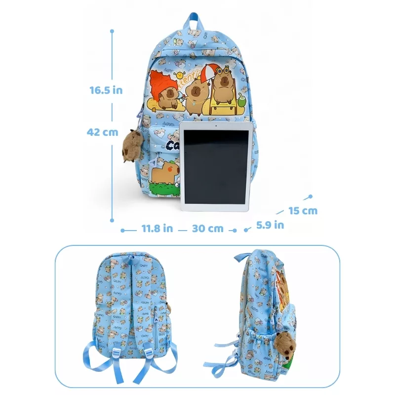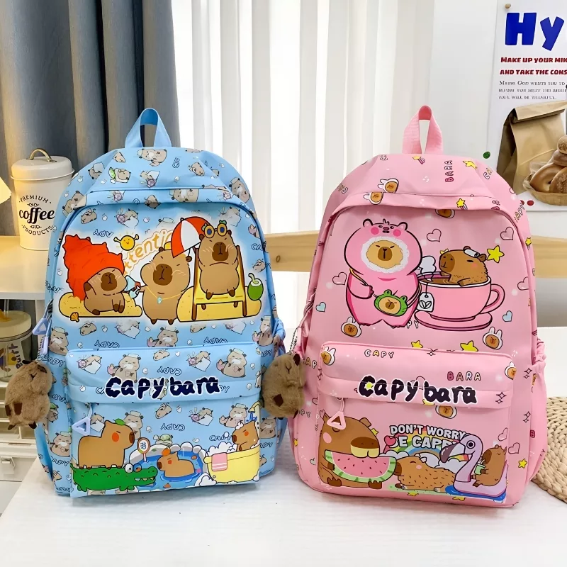 I love my new backpack! The capybara print makes school mornings more fun, and I can fit all my notebooks inside with room to spare.