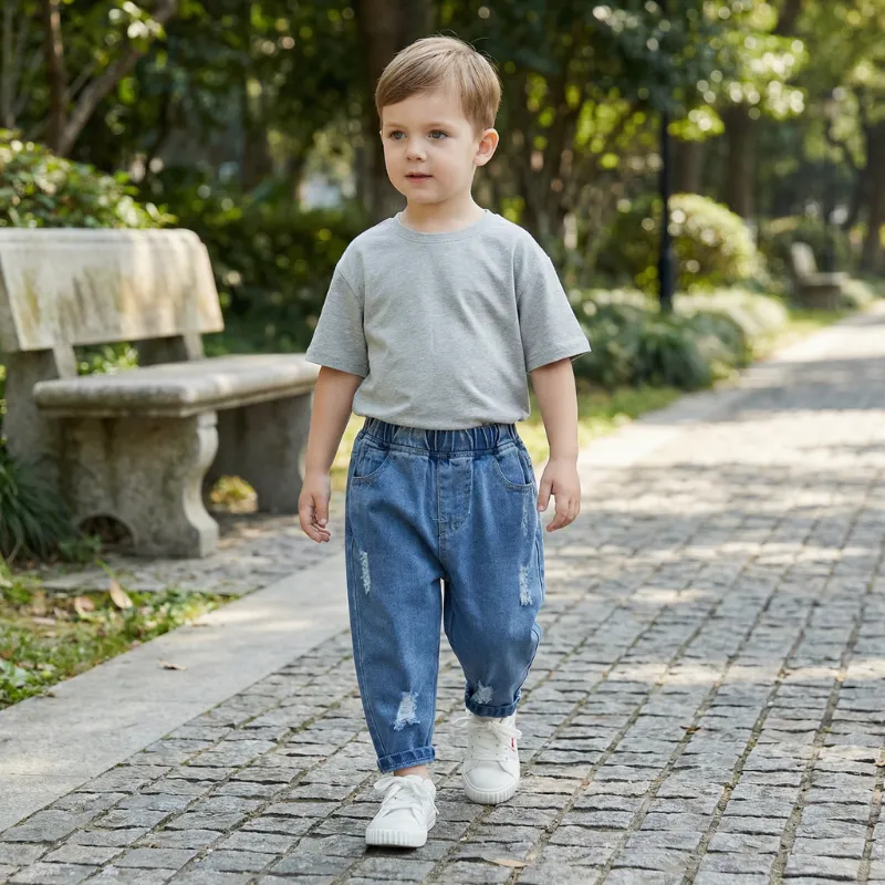 All-Day Comfort - Soft elastic waist ensures quick dressing every morning. Breathable denim keeps little legs cool during busy activities.