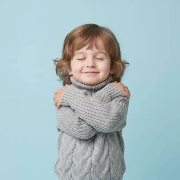 My brother always wants to wear his new jumper. He never complains about being cold. Really easy for him to put on by himself.