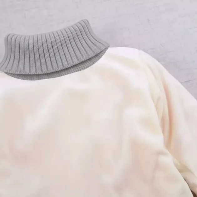 My younger sister can put this turtleneck on without help. It’s so comfy and not scratchy. She looks adorable and stays toasty on walks.