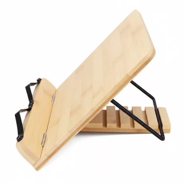 My sister and I use this bamboo stand every night for story time. It’s sturdy and holds our books, so we don’t have to bend down.