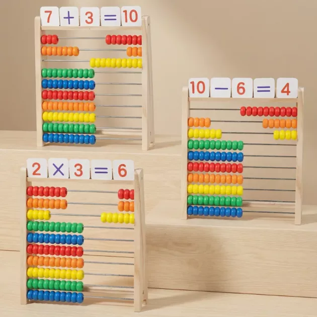 This wooden toy makes numbers less scary for my twins. They compete to see who can do sums faster. It’s fun watching them learn together!