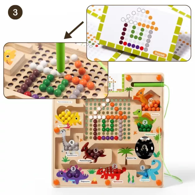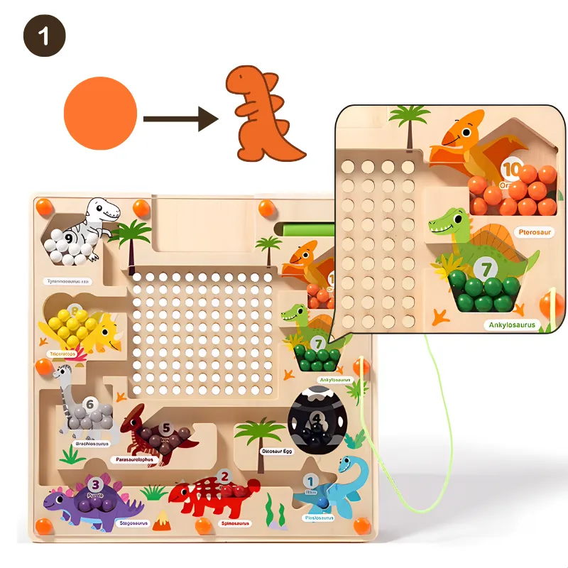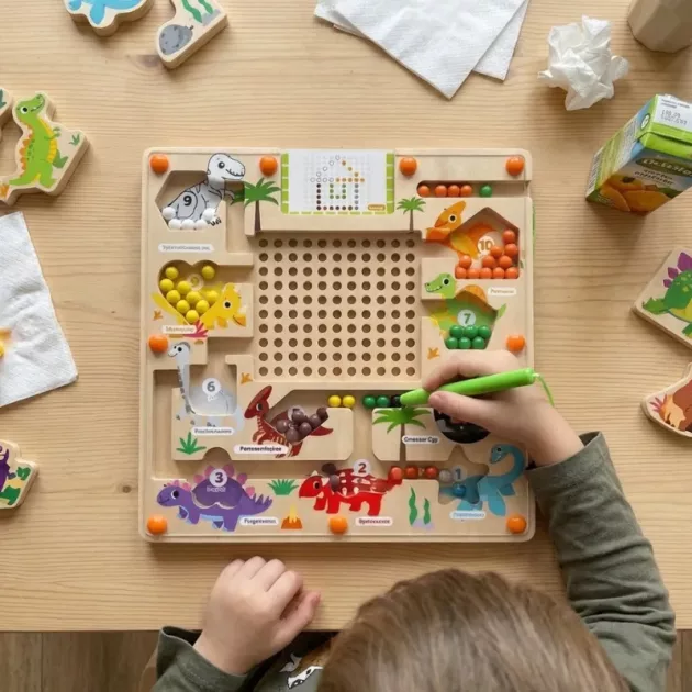 I keep the dino board in my bag for restaurant trips. It keeps my nephew quiet, focused, and happily sliding beads instead of grabbing my phone.
