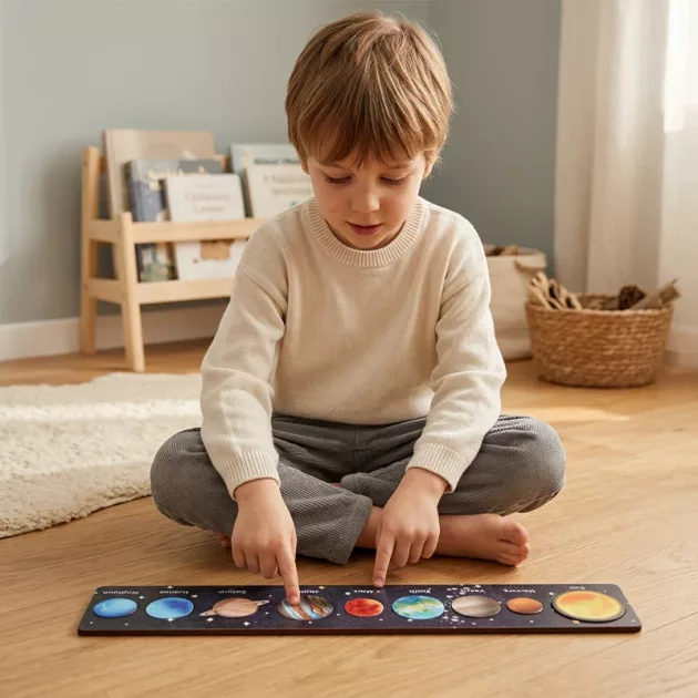 Encourage discovery as your child explores every colourful planet. Crafted from durable wood, this engaging puzzle makes learning enjoyable. Interactive design supports hands-on understanding of our solar system. Watch their confidence and knowledge grow every day.