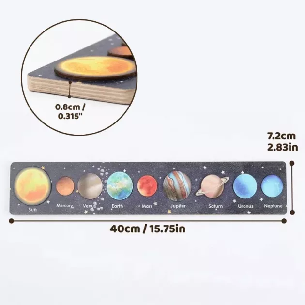 Bought this solar puzzle for my nephew, and he now points out planets in books and videos. The wooden pieces feel great and keep him busy for ages.