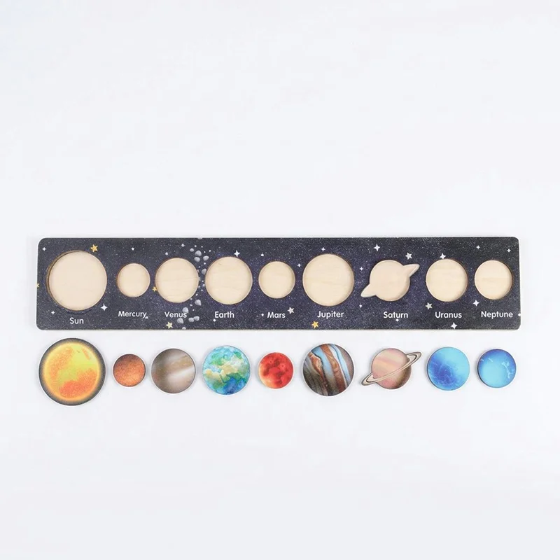 Bought this solar puzzle for my nephew, and he now points out planets in books and videos. The wooden pieces feel great and keep him busy for ages.